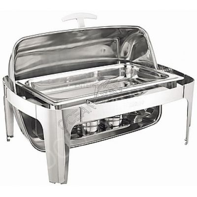 Chafin-dish rectangular table AIRHOT 32117 made of stainless steel, has a sliding cover. It is possible to use plates for heating.