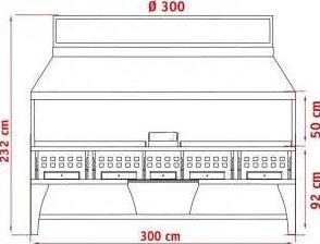 The combined grill PEVA BG Combi 300 is suitable for cooking meat, fish and vegetables on the coals on the catering. Dishes cooked on charcoal, are obtained tasty and fragrant. The equipment is equipped with 4 work areas: 2 grid, in the middle of the roasting pan 450 mm and 1 slot length 1200 mm for cooking kebabs. The unit is mounted on 4 legs, has a bottom shelf and work surface, front. Body, work surface and grate made of forging steel.