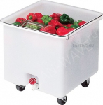 Built-in drain tube allows the washing of fruit and vegetables directly in the container without the necessity of their withdrawal from there. Transparent sliding cover provides an optimal overview of the contents of the container and easy access to it. The product is equipped with 4 movable wheels for easy transport. The container is made of high quality food grade plastic.