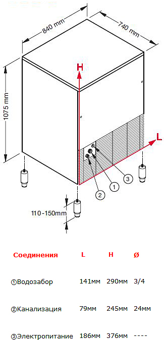 - Type of ice: cube - 13 g., 18 g, 33 g., 42 gr., 60 gr.