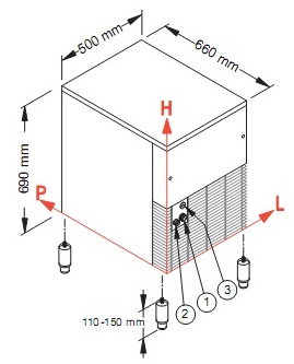 Ice maker Brema GB 902A made of stainless steel. This equipment meets international quality standards and hygienic requirements. The ice maker operates on environmentally friendly refrigerant R 404a. The ice level is maintained automatically. For installation of the necessary hoses cold water (valve 1/2" or 3/4") and drainage (drain Ø 24).