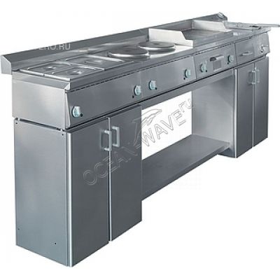 The process of heating food placed in the bath, is on the "dry" type through 2 heaters. 2 temperature controls allow easy temperature adjustment Heaters steam table independently from each other. The modular construction of the unit is made of high quality stainless steel.