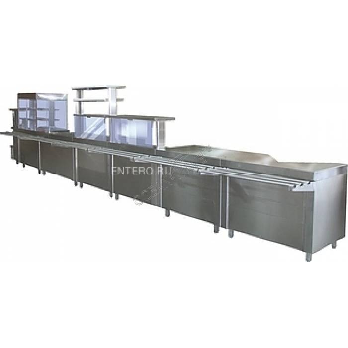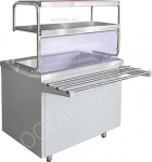 Конструкция, полностью выполненная из высококачественной нержавеющей стали, гарантирующей долгий срок ее службы, оснащена направляющей для подносов и вместительной двухуровневой полкой.