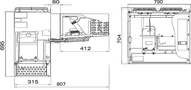 Low temperature monoblock Polair MB SF 214 is designed to maintain the desired temperature in freezers. Equipment operates at ambient temperature from 5 to 40 °C and relative humidity not above 80%. The casing is made of galvanized metal with polymeric coating, providing reliable protection against corrosion and mechanical influences.