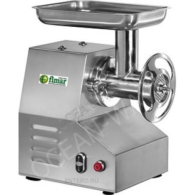 Meat grinder FIMAR 22/TS is designed for grinding meat and fish for stuffing, re-grinding kotlety mass and stuffing sausages at public catering establishments and trade. The model is equipped with a gear reducer in oil bath and reverse. The inner components are detachable, which is convenient for washing in a dishwasher. The body, self-sharpening knife, grid, hopper and removable cutting unit is made of stainless steel.