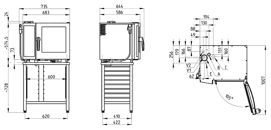 Steamer O623IC Retigo Orange Vision range is designed for cooking in catering establishments: restaurants, cafes, fast-food outlets and kitchens. The model allows to replace several types of kitchen equipment: a stove, fan oven, tilting frying pan, convection oven, food boiler and other Cooking in the oven helps to keep almost all nutrients products.