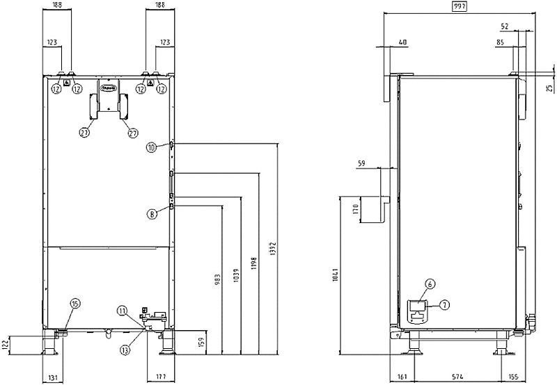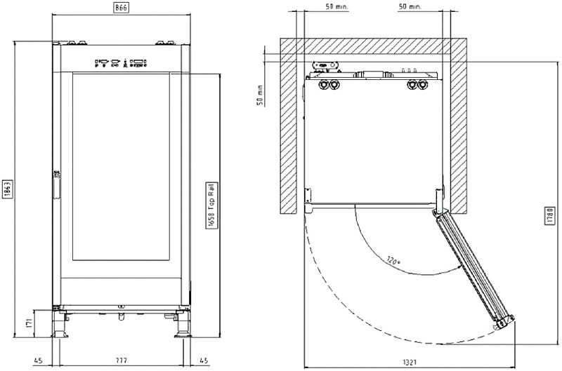 - Reversible door option to install even after starting and the operation of the furnace (except models 20 GN 2/1 and 20 GN 1/1)
