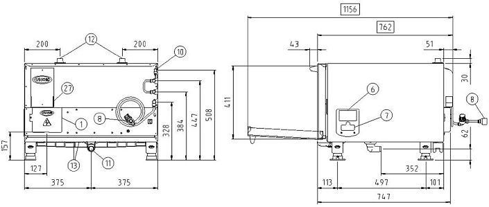 - Reversible door option to install even after starting and the operation of the furnace (except models 20 GN 2/1 and 20 GN 1/1)