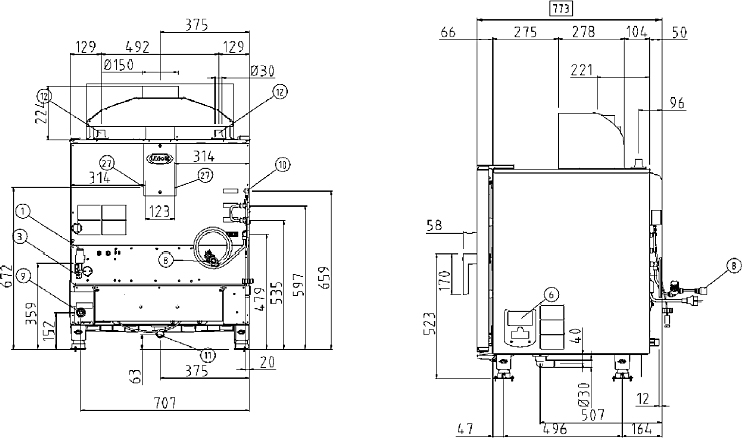 750 x 773 x 1107 мм