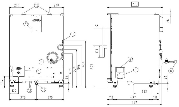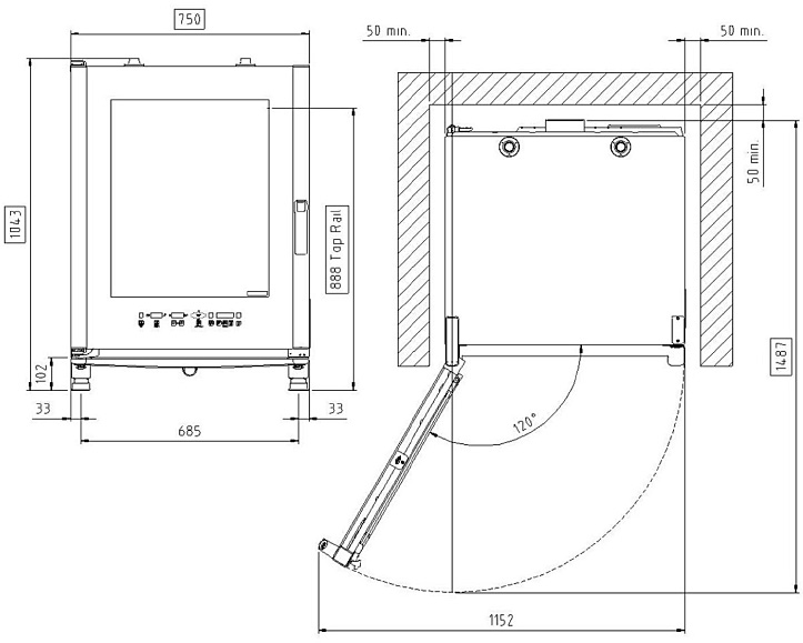 - Reversible door option to install even after starting and the operation of the furnace (except models 20 GN 2/1 and 20 GN 1/1)