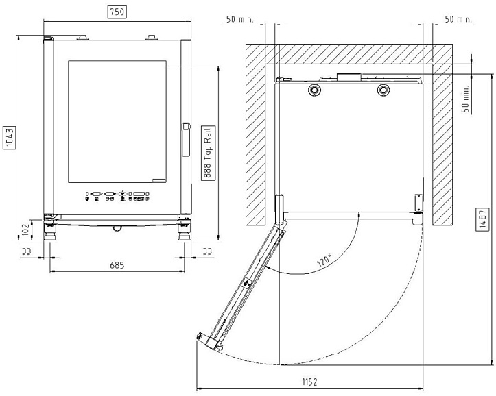 - Reversible door option to install even after starting and the operation of the furnace (except models 20 GN 2/1 and 20 GN 1/1)