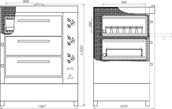 Baking oven Rise the CCE-750/3 used at the enterprises of public catering or in small bakeries for baking a wide range of bakery and pastry, and for baking (heat treatment) meat, fish, vegetable and other dishes. High camera baking pan bread excluding burning the top crust from contact with upper electrical heating elements.