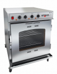 Печь имеет интуитивно понятное электромеханическое управление, которое включает таймер приготовления на 12 часов, термостат приготовления (от +60 до +180 °C), термостат хранения (от +30 до +90 °C), таймер копчения на 1 час. Печь позволяет осуществлять горячее и холодное копчение. В комплект печи входят две полки-решетки, поддон, съемный жиросборник, контейнер для щепы. Внутренний размер камеры 560х520х660 мм. В камере установлены 6 пар направляющих под GN2/1 с шагом 65 мм.