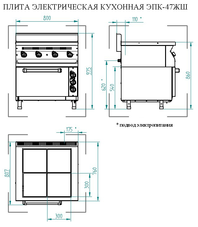 - The nominal power of oven: 4.8 kW
