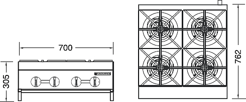 Gas stove , Turbo air TAHP-24-4 Radiance series is designed for cooking various dishes in neplatnou the dishes by boiling, frying and other types of thermal treatment on the catering. The case is made of stainless steel, covers and grates - made of cast iron.