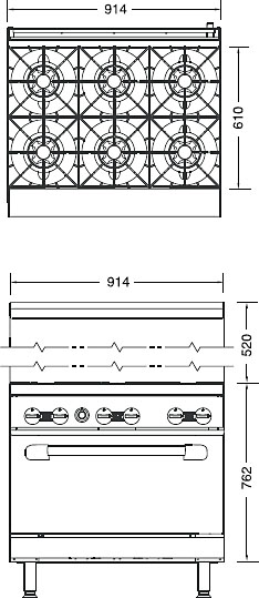 Gas stove , Turbo air TAR-6 Radiance series is designed for cooking various dishes in neplatnou the dishes by boiling, frying and other types of thermal treatment on the catering. The case is made of stainless steel, covers and grates - made of cast iron.