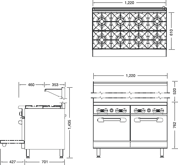 Gas stove , Turbo air TAR-8 Radiance series is designed for cooking various dishes in neplatnou the dishes by boiling, frying and other types of thermal treatment on the catering. The case is made of stainless steel, covers and grates - made of cast iron.