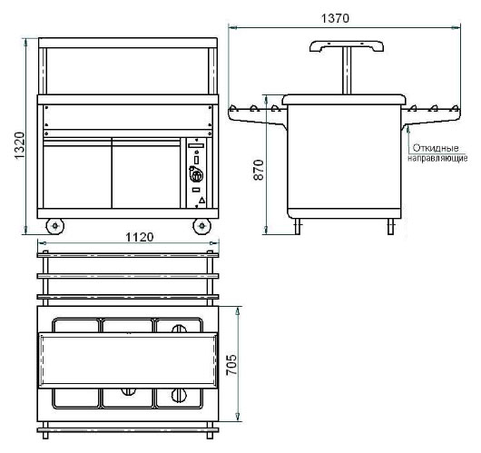 Холодильный прилавок Abat ПВВ(Н)-70ПМ-НШ предназначен для кратковременного хранения и последующей раздачи холодных закусок и третьих блюд на предприятиях общественного питания и торговли. Модель оснащена колесами со стопорным механизмом.