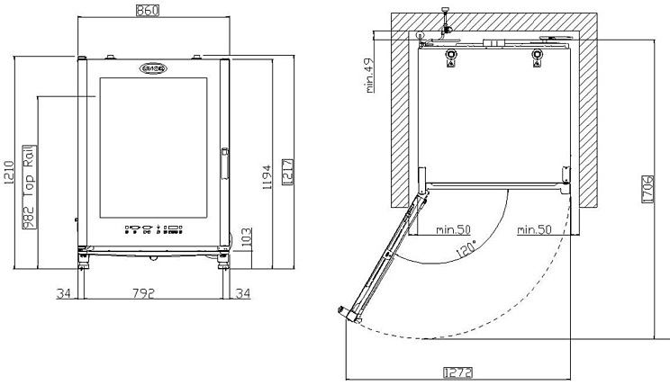 - Реверсивная дверца с возможностью переустановки даже после начала запуска и работы печи (кроме моделей 20 GN 2/1 и 20 GN 1/1)
