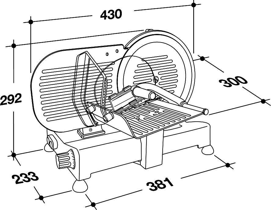 Профессиональный мотор с функцией принудительной вентиляции исключает возможность перегрева устройства, а также делает его работу практически бесшумной. Поддон для продуктов, перемычка для регулирования толщины среза и кольцо фиксации лезвия изготовлены из алюминия, отполированного путем анодирования, что обеспечивает их гигиеническую чистоту и защиту от коррозии.