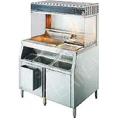 Station Fabristeel F70-370 is designed for heating and bagging fries. Heating is provided at the top and bottom. The body is made of stainless steel.