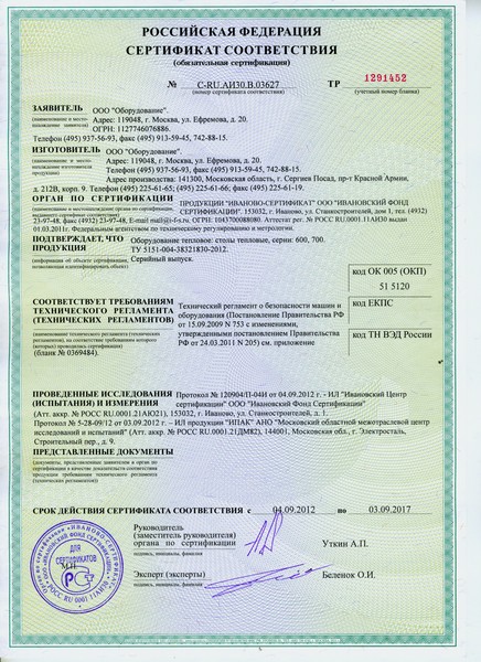 Volume heating of the heat table is performed by using the heating element with the fan, to adjust temperature controller is used with temperature-sensitive sensor. The heating time to operating temperature is 15 min.