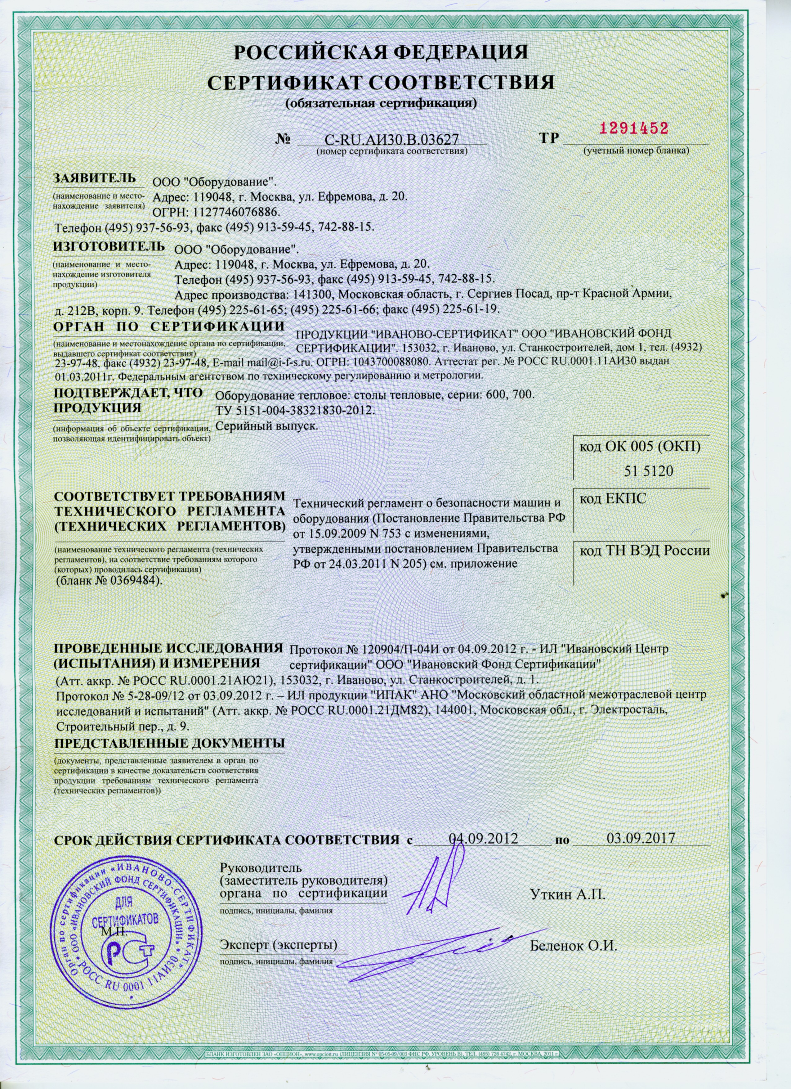 Volume heating of the heat table is performed using the heater (PETN). Special design prevents heating of all external surfaces, because the double wall of the housing and doors is provided by maintaining a predetermined temperature and protect the front surface from the heat. Hot meals are arranged in the heated plates that preclude untimely cooling. The device is made of stainless steel.