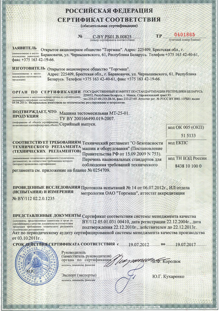 Тестомес ТОРГМАШ, Беларусь МТ-25-01