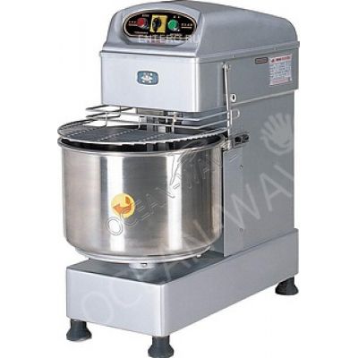 Mixing machine Kocateq HS40A designed in bakeries and catering companies for kneading dough and other species with a moisture content of at least 45%. The model is equipped with an analog control panel with speed controller, push buttons, start and emergency stop. The bowl is made of polished stainless steel kneading hook, cage, caging stainless steel, body made of enameled sheet steel.
